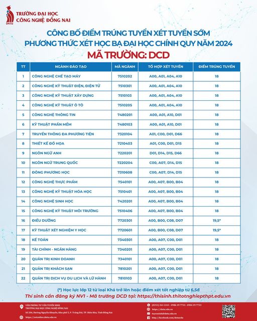 DNTU CÔNG BỐ ĐIỂM CHUẨN XÉT TUYỂN