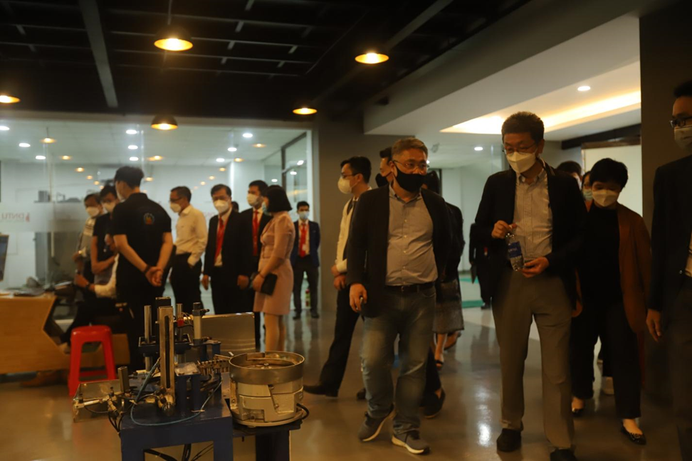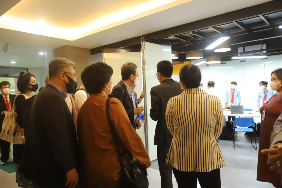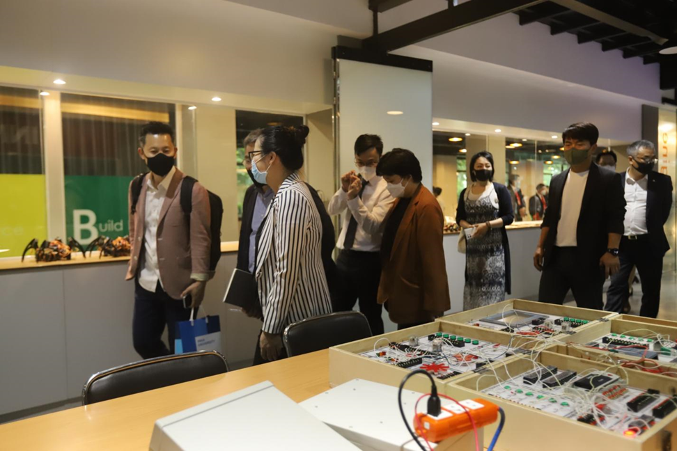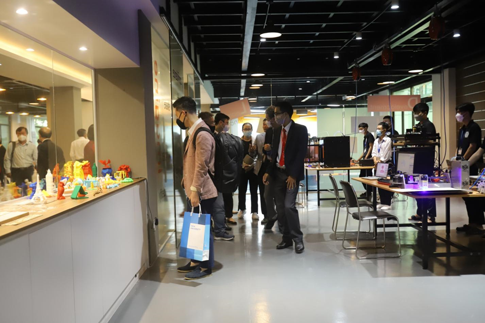Đoàn đã đến và tham quan tại Inovation Lab, Khoa Công nghệ. Các chuyên gia rất ấn tượng về cơ sở vật chất và phương pháp học tập của sinh viên Khoa Công nghệ. Dưới đây là một số hình ảnh đoàn tham quan tại Khoa.