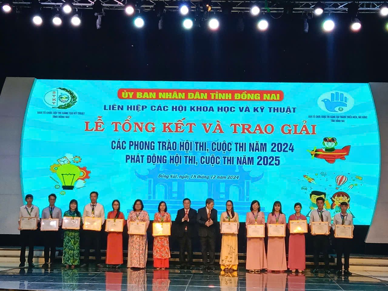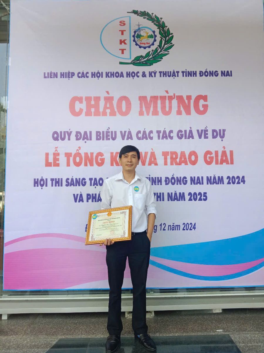 Trong Lễ tổng kết và trao giải các phong trào hội thi, cuộc thi năm 2024 do Liên hiệp các Hội Khoa học và Kỹ thuật tỉnh Đồng Nai tổ chức, Khoa Kỹ thuật Trường Đại học Công nghệ Đồng Nai đã xuất sắc giành được giải Nhì và giải Ba với những dự án mang tính ứng dụng cao và đầy sáng tạo.