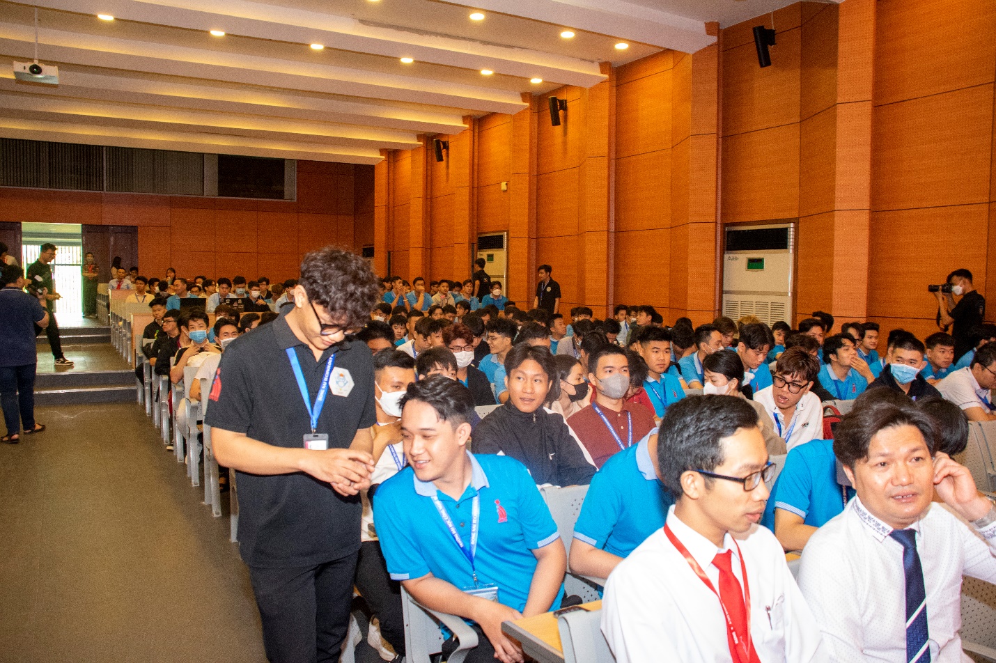 Đặc biệt, TS. Vũ Hồng Vận và ThS. Đặng Thái Thịnh đã có những chia sẻ xung quanh chủ đề về công nghệ AI, ChatGPT, những điểm mới mẻ, lợi thế và bất lợi khi các công nghệ AI như ChatGPT ra đời. Các bạn sinh viên đã được trang bị thêm kiến thức mới về một trong những công nghệ mới nhất của AI và cách sử dụng nó trong giáo dục đại học.