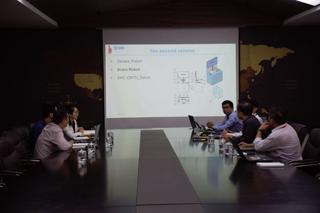 Thay mặt cho nhóm dự án robot, PGS.TS. Lê Thế Vinh trình bày quá trình làm việc, thảo luận giữa hai nhóm SMC-Team và DNTU-Team, cùng với các phiên bản được đề xuất. Thầy và nhóm nghiên cứu cảm ơn đến SMC-Team vì sự phối hợp chặt chẽ trong thời gian vừa rồi. Hai bên tin tưởng rằng hợp tác giữa Khoa kỹ thuật, Trường đại học Công nghệ Đồng Nai và Công ty SMC sẽ tiếp tục phát triển, các dự án nghiên cứu khoa học và ứng dụng công nghệ tiên tiến sẽ có những kết quả tốt, kết quả hoạt động nhằm đào tạo các thế hệ sinh viên nắm vững lý thuyết, giỏi thực hành, cập nhật công nghệ mới và đáp ứng nhu cầu về nhân lực chất lượng cao của Công ty SMC nói riêng và các doanh nghiệp nói chung.