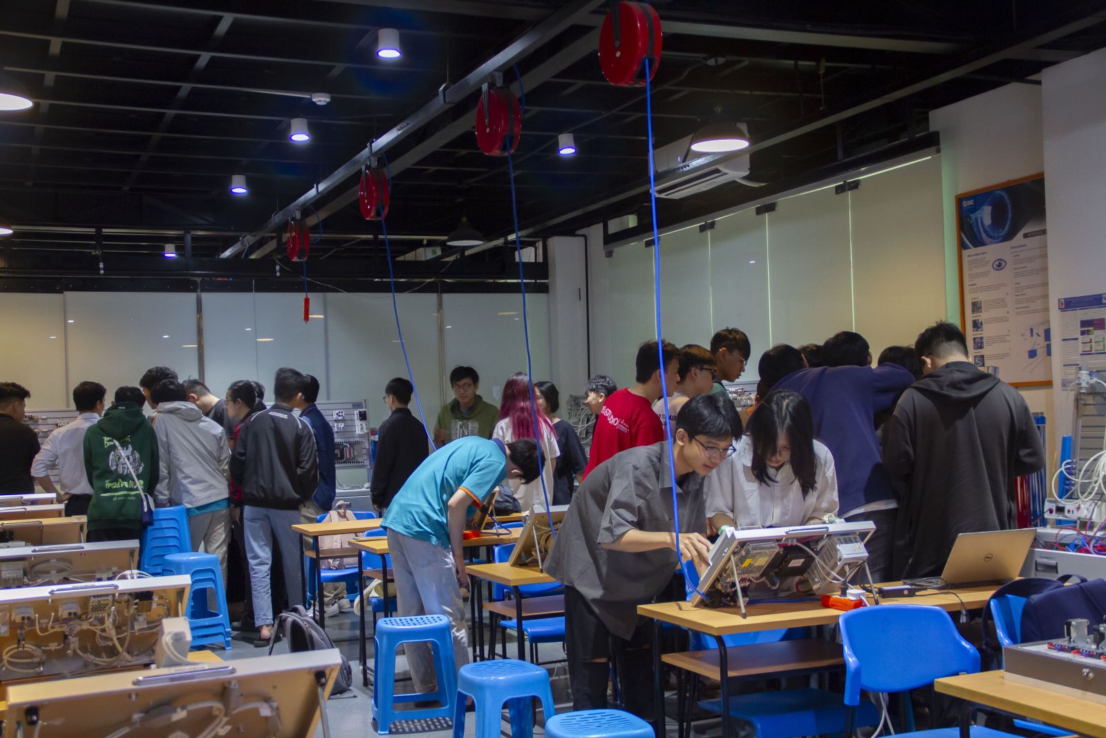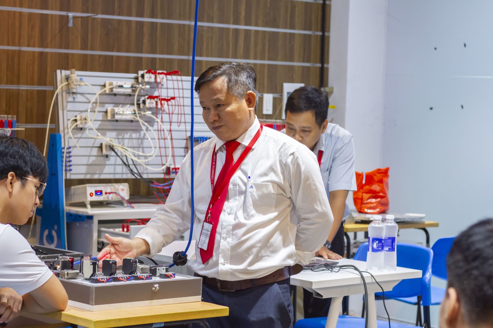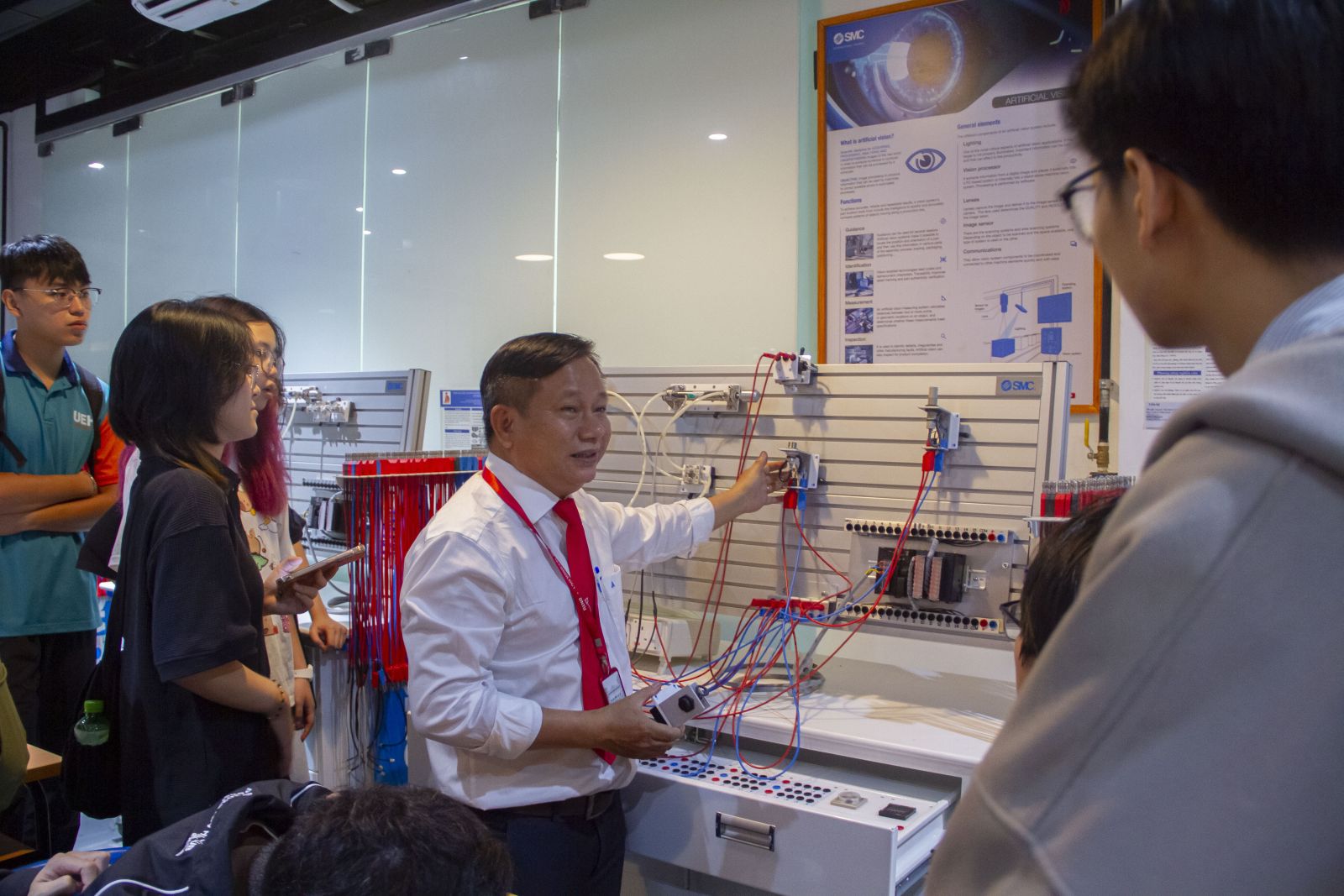 🔹 Trải nghiệm thực hành tại Phòng SMC Automation Lab: Sinh viên được thao tác trực tiếp trên hệ thống khí nén thực tế tại Phòng SMC Automation Lab. Với sự hướng dẫn chi tiết, các bạn đã có cơ hội tìm hiểu cách công nghệ khí nén giúp tối ưu hóa quy trình sản xuất và tự động hóa trong công nghiệp, mang lại những trải nghiệm học tập quý báu và thiết thực.