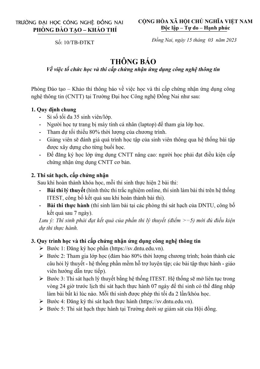 13:00 - 17-03-2023 3 Thông báo về việc tổ chức học và thi cấp chứng nhận ứng dụng công nghệ thông tin